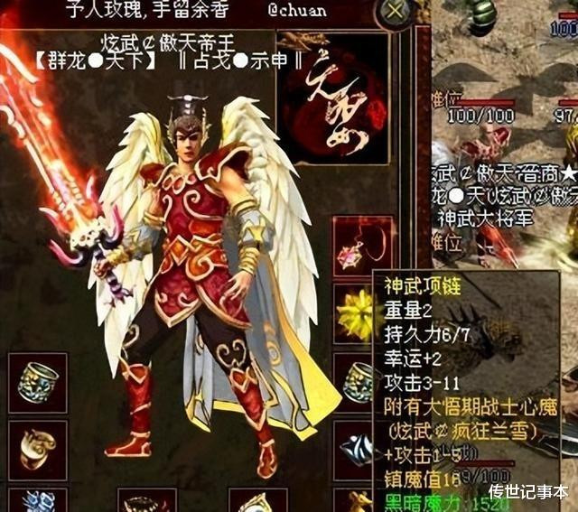 但在百区这种冷门服混,就算你是个高手也很难出名。魔帝心里门清得很,在传世要想出名,光有等级可不够,得靠装备说话。机会总是青睐有准备的人,当时全服开启了一场冲级大战,奖励是首件金甲披风,这可是神器啊!放在现在,那就相当于12技能的屠龙,谁不想要?